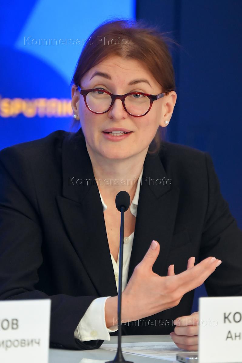 Пресс-конференция, посвященная старту Конкурса для молодых ученых, в МИА "Россия сегодня". Вице-президент по технологиям АФК "Система" Анна Коротченкова во время пресс-конференции.