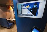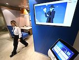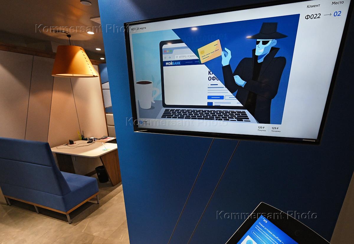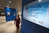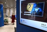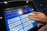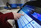 Жанровая фотография. Отделение ВТБ. Электронный терминал для клиентов банка. Клиентка выбирает услугу в банке.