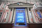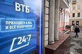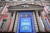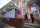Жанровая фотография. Офис банка ВТБ. Люди идут по улице у здания офиса.