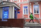 Жанровая фотография. Прохожий на фоне офиса банка ВТБ.