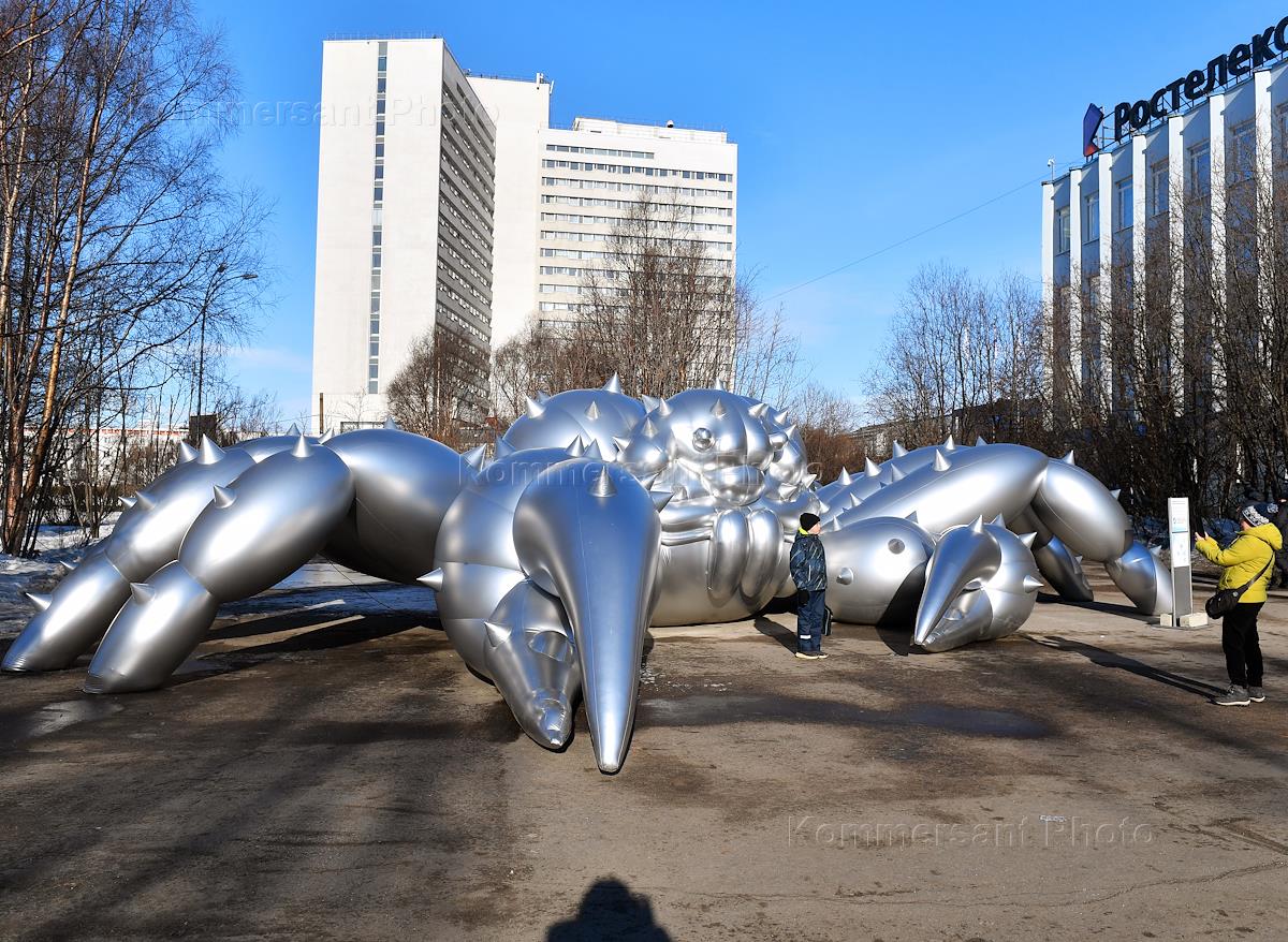VI Международный арктический форум (МАФ) "Арктика – территория диалога". Жанровая фотография. Фигура надувного краба на улице города.