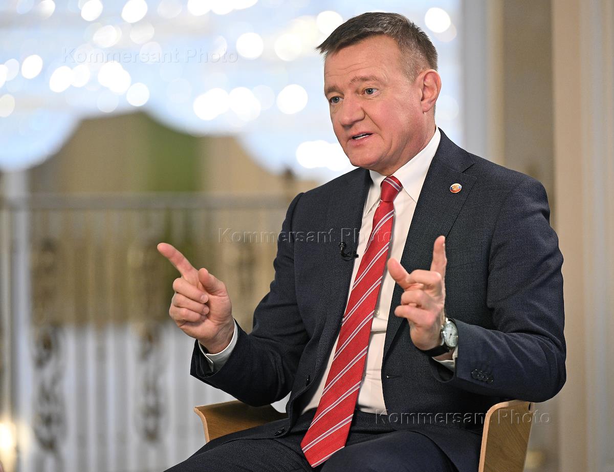 Министр транспорта России Роман Старовойт во время интервью для телеканала в Совете Федерации (СФ) России.