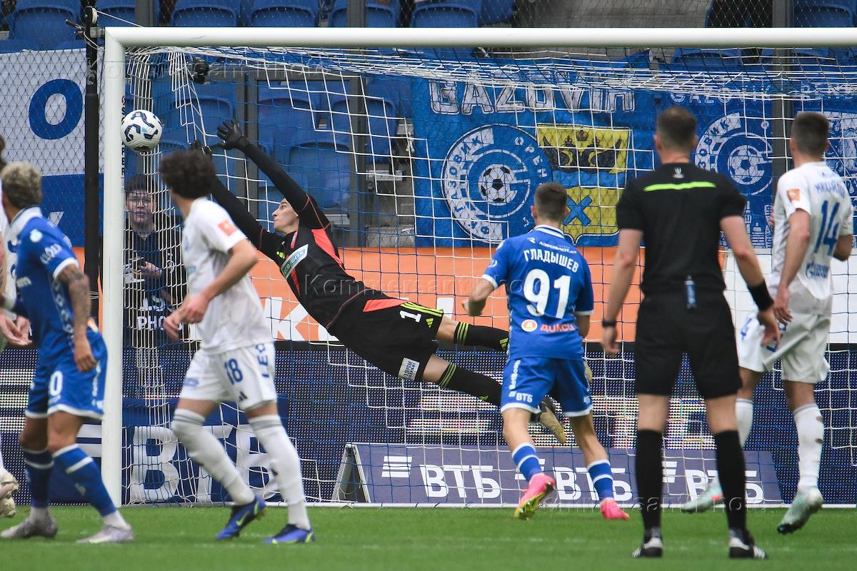 Мир Российская Премьер-Лига (РПЛ) 2024/2025. 22-й тур. Матч между командами "Динамо" (Москва) - "Оренбург" (Оренбург) на стадионе "ВТБ Арена". Вратарь команды "Динамо" Андрей Лунев во время матча.