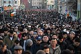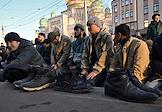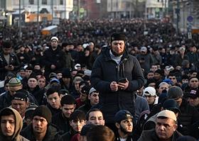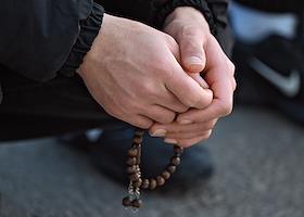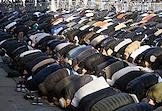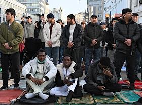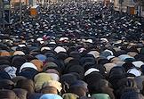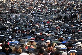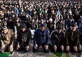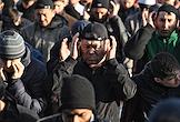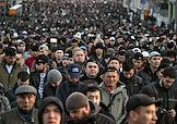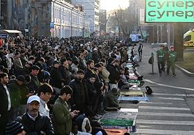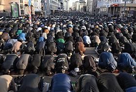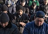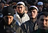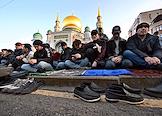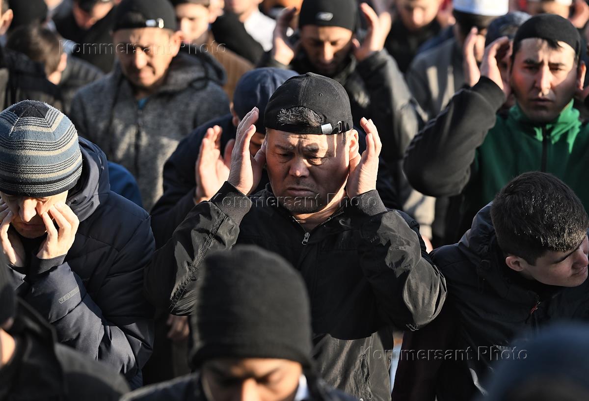 Праздничные мероприятия в день Ураза Байрам в Московской Соборной мечети. Верующие во время богослужения.