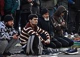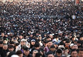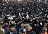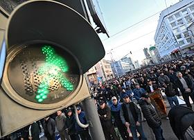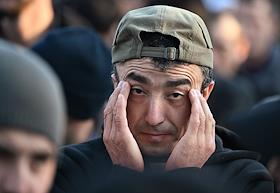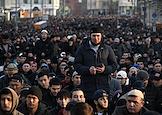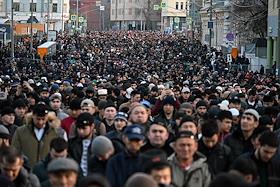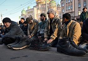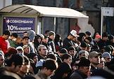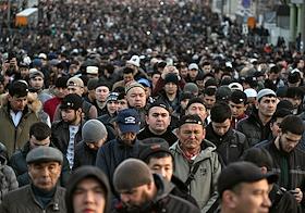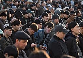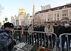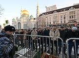 Праздничные мероприятия в день Ураза Байрам в Московской Соборной мечети. Верующие перед началом богослужения.