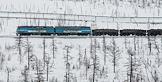 Жанровая фотография. Грузовой железнодорожный состав с углем в тундре на подъезде к Норильску.