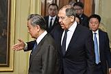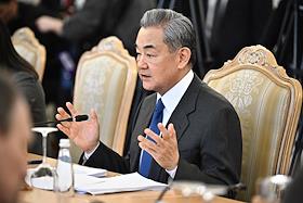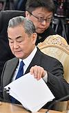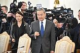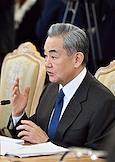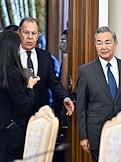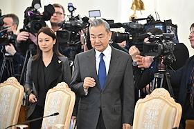 Министр иностранных дел Китайской Народной Республики Ван И (в центре) перед началом переговоров с министром иностранных дел России Сергеем Лавровым в Доме приёмов МИД России.