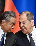 Министр иностранных дел Китайской Народной Республики Ван И (слева) во время переговоров с министром иностранных дел России Сергеем Лавровым в Доме приемов МИД России.