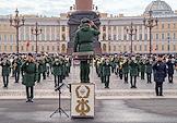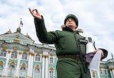 Репетиция Парада Победы на Дворцовой площади. Дирижер сводного военного оркестра Санкт-Петербургского гарнизона во время репетиции.