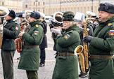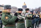 Репетиция Парада Победы на Дворцовой площади. Участники сводного военного оркестра Санкт-Петербургского гарнизона во время репетиции.