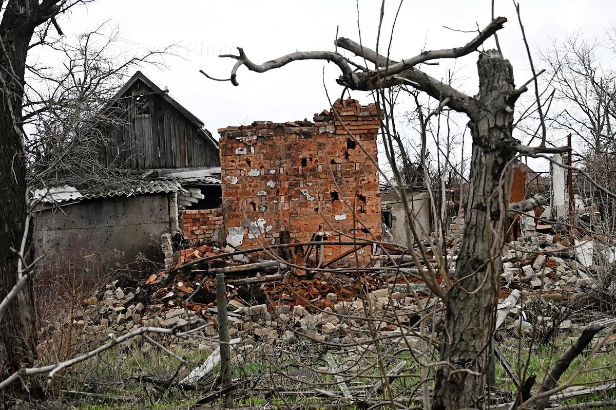 Ситуация в Донецкой Народной Республике (ДНР). Пострадавший от обстрела кирпичный жилой частный дом.