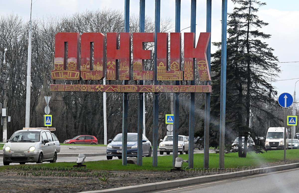 Ситуация в Донецкой Народной Республике (ДНР). Въездная стела с надписью "Донецк" на трассе.