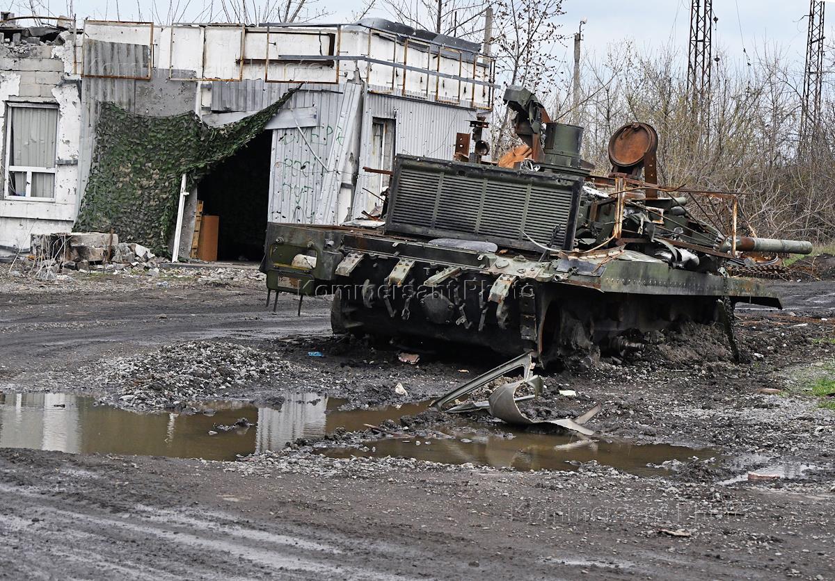 Ситуация в Донецкой Народной Республике (ДНР). Разбитая военная техника ВСУ на обочине дороги.