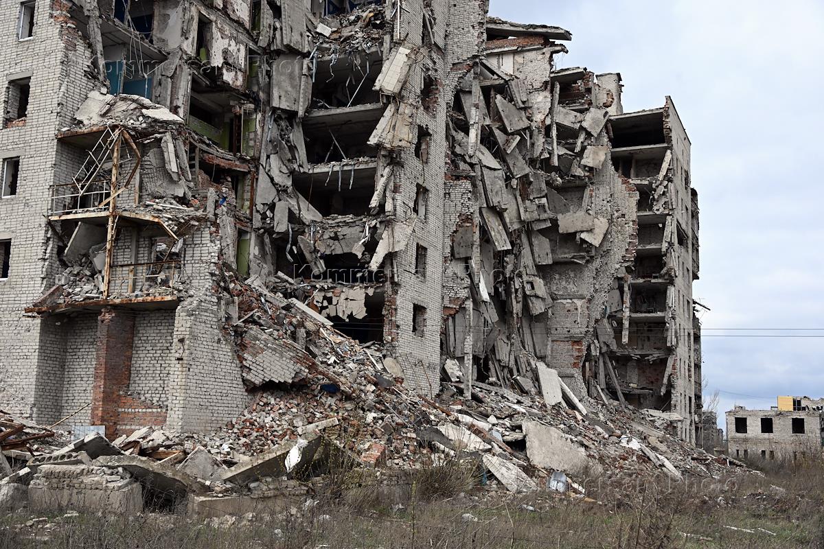 Ситуация в Донецкой Народной Республике (ДНР). Четыре стены, оставшиеся после обстрела, многоэтажного жилого дома.
