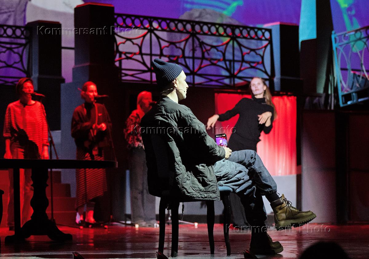 Репетиция спектакля "Маскарад с закрытыми глазами" Московского художественного театра (МХТ) имени А.П. Чехова в постановке режиссера Петра Шерешевского на сцене Большого драматического театра (БДТ) имени Г.А. Товстоногова.