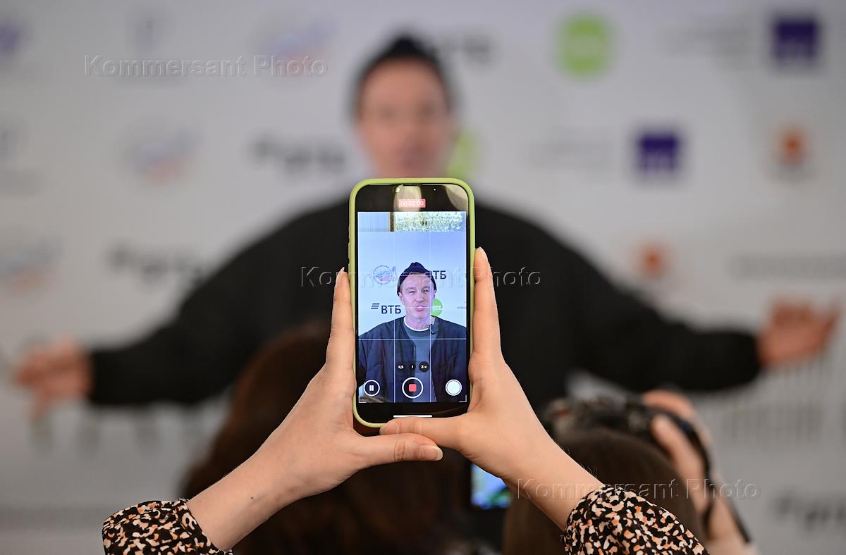 Пресс-конференция художественного руководителя Московского художественного театра (МХТ) им. А.П. Чехова Константина Хабенского, посвященная Большим гастролям МХТ им. А.П. Чехова в Санкт-Петербурге. Художественный руководитель МХТ им. А.П. Чехова Константин Хабенский во время пресс-конференции.