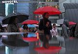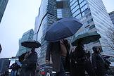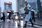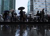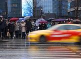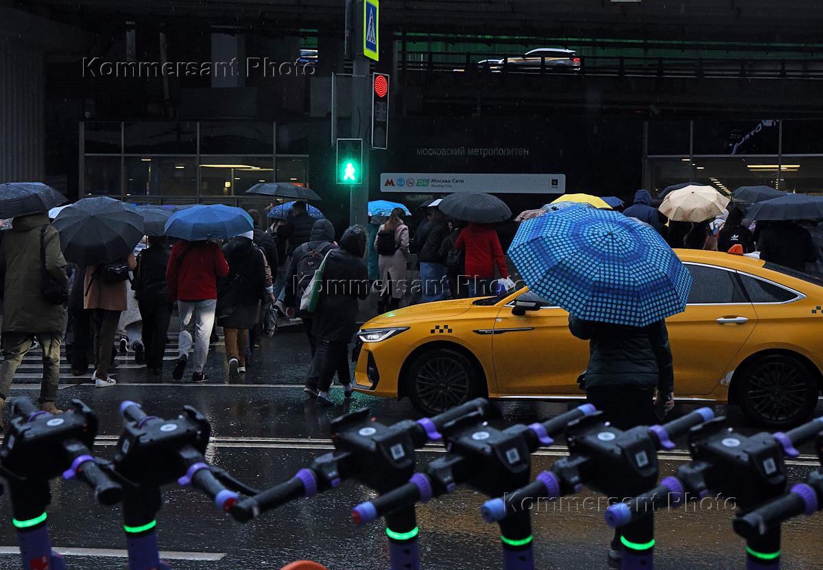 Жанровая фотография. Дождь в Москве. Люди под зонтами идут по улице.