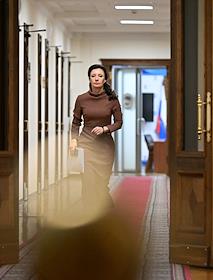 Пленарное заседание Государственной думы (ГД) России. Заместитель председателя ГД России Ирина Яровая во время пресс-похода перед началом заседания.