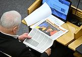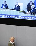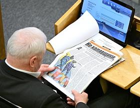 Пленарное заседание Государственной думы (ГД) России. Член комитета ГД России по обороне Виктор Соболев во время заседания.