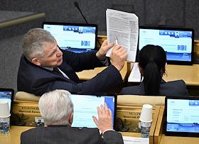 Пленарное заседание Государственной думы (ГД) России. Председатель комитета ГД России по труду, социальной политике и делам ветеранов Ярослав Нилов во время заседания.