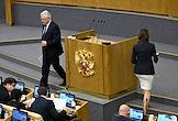 Пленарное заседание Государственной думы (ГД) России. Слева направо: член комитета ГД по культуре Ольга Германова, член комитета ГД России по бюджету и налогам Виктор Селиверстов и первый заместитель председателя комитета ГД России по обороне Андрей Красов перед началом заседания.