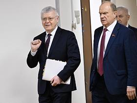 Пленарное заседание Государственной думы (ГД) России. Председатель комитета ГД России по безопасности и противодействию коррупции Василий Пискарев (слева) и лидер КПРФ, руководитель фракции КПРФ в ГД России Геннадий Зюганов (справа) перед началом заседания.