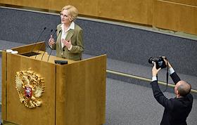 Пленарное заседание Государственной думы (ГД) России. Первый заместитель министра финансов России Ирина Окладникова во время заседания.