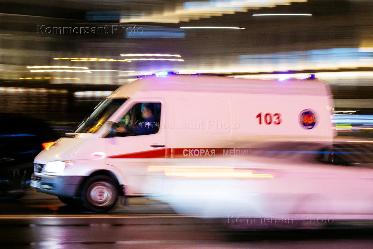 Жанровая фотография. Автомобиль скорой медицинской помощи на улице города.