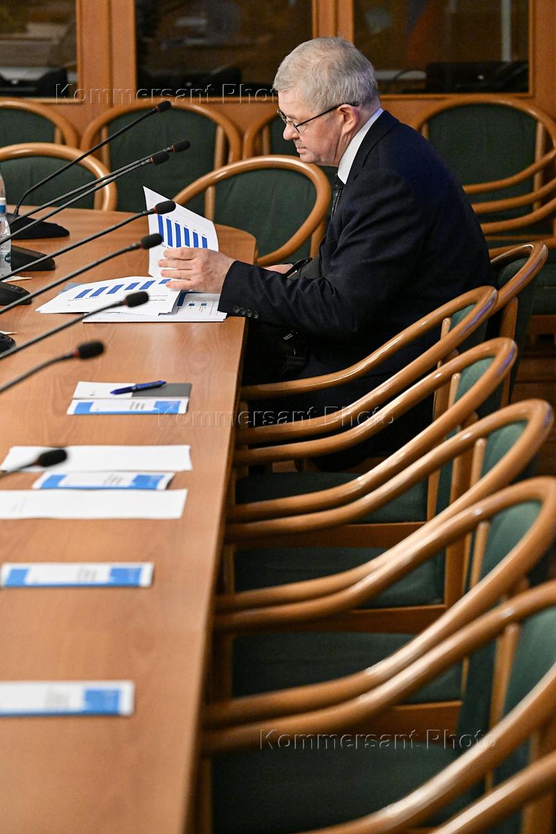Совместное заседание комитетов Государственной думы (ГД) России по финансовому рынку, бюджету и налогам, экономической политике и контролю по рассмотрению годового отчета Банка России за 2024 год. Первый заместитель председателя Центрального Банка России Дмитрий Тулин перед началом заседания.