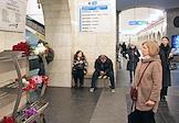 Возложение цветов у мемориальной доски памяти жертв теракта 3 апреля 2017 года на станции метро "Технологический институт".