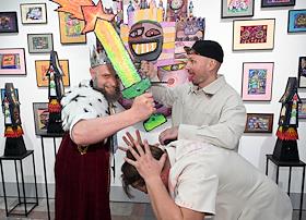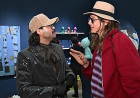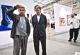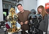 VIP-открытие ярмарки Art Russia от "Синергии" в Гостином дворе. Художник по фарфору Родион Артамонов (слева) и продюсер Андрей Фомин (справа) на церемонии.