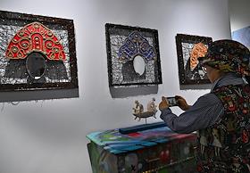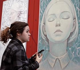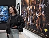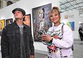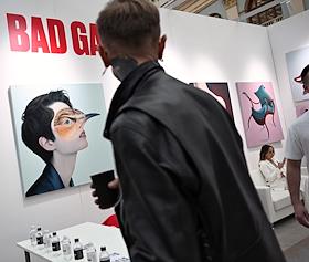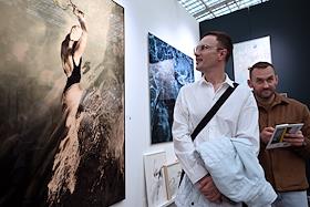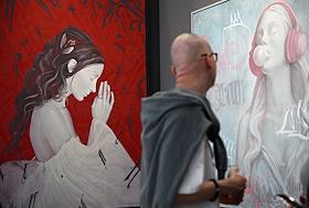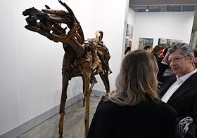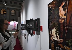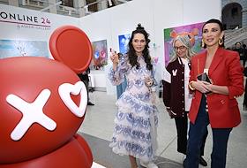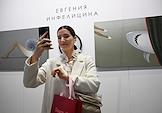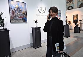Церемония VIP-открытия ярмарки Art Russia от корпорации "Синергия" в Гостином дворе. Стенд художницы Евгении Инфелициной на ярмарке.