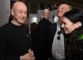 Церемония VIP-открытия ярмарки Art Russia от "Синергии" в Гостином дворе. Глава компании "Si-Records" Игорь Сандлер (слева), бизнесмен Александр Шенкман (второй справа) и стилист Эстер Шенкман (справа) во время церемонии.