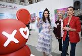 Церемония VIP-открытия ярмарки Art Russia от "Синергии" в Гостином дворе. Певица Корнелия Манго на церемонии. Телеведущая, внучка Эдуарда Шеварднадзе Софико Шеварднадзе на церемонии.