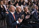 Церемония VIP-открытия ярмарки Art Russia от "Синергии" в Гостином дворе. Стилист Влад Лисовец (справа) на церемонии.