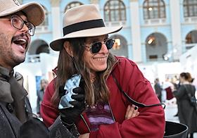 Церемония VIP-открытия ярмарки Art Russia от "Синергии" в Гостином дворе. Певица Корнелия Манго (справа) на церемонии.