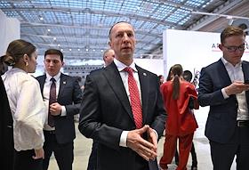 Церемония VIP-открытия ярмарки Art Russia от корпорации "Синергия" в Гостином дворе. Председатель совета директоров группы компаний ЕСН Григорий Березкин на церемонии.