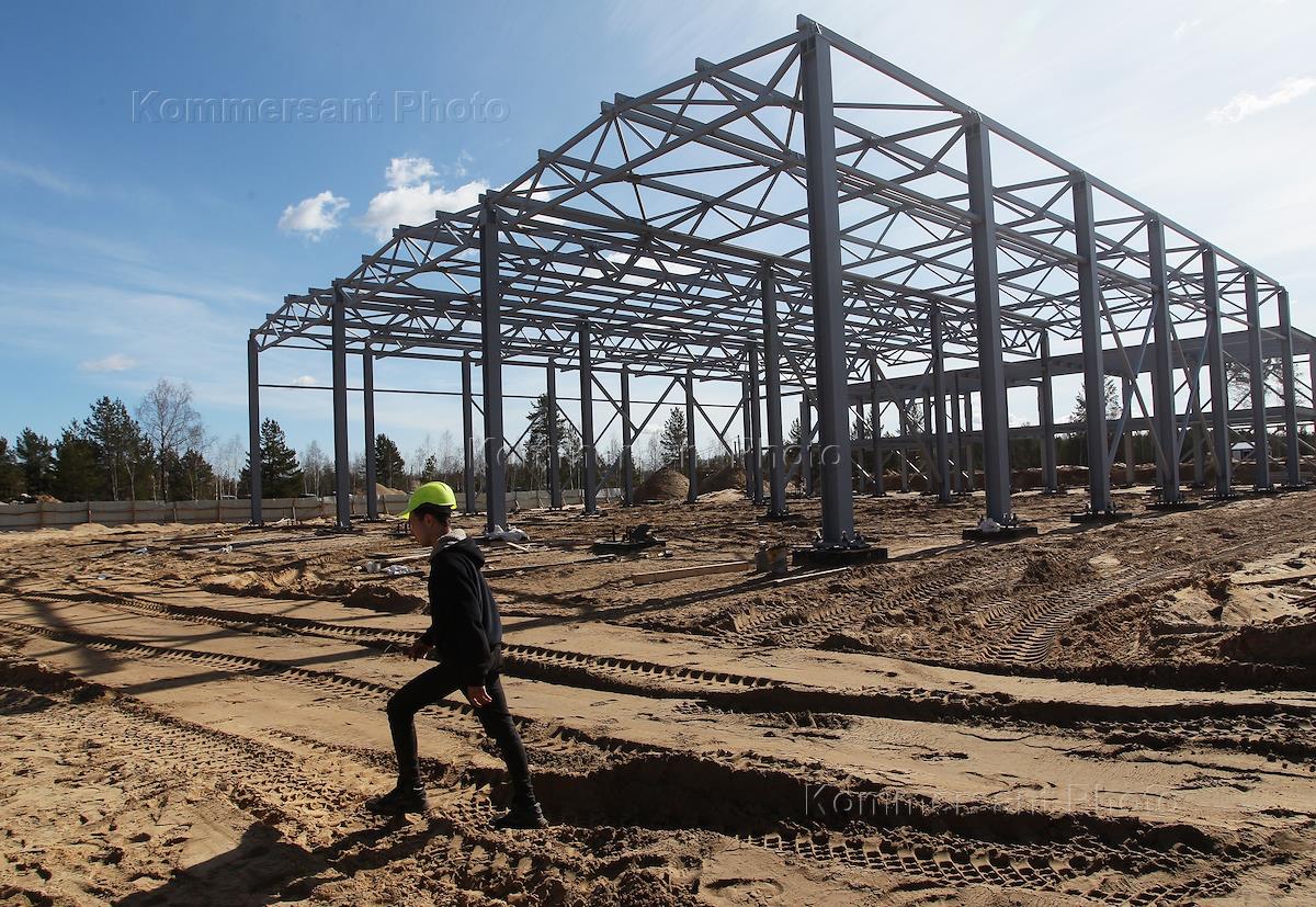 Осмотр строительства объектов на территории особой экономической зоны (ОЭЗ) "Кулибин". Строительство производственного корпуса на строительной площадке.