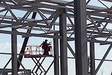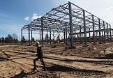 Осмотр строительства объектов на территории особой экономической зоны (ОЭЗ) "Кулибин". Строительство каркаса производственного корпуса на строительной площадке.