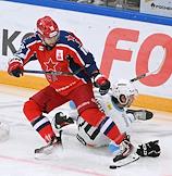 Фонбет - Континентальная хоккейная лига (КХЛ). Чемпионат сезона 2024/25. Плей-офф. 1/8 финала. Матч между командами ЦСКА (Москва) - "Динамо Мн" (Минск) на стадионе "ЦСКА Арена". Игрок команды ЦСКА Егор Афанасьев (слева) во время матча.