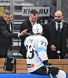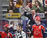 Фонбет - Континентальная хоккейная лига (КХЛ). Чемпионат сезона 2024/25. Плей-офф. 1/8 финала. Матч между командами ЦСКА (Москва) - "Динамо Мн" (Минск) на стадионе "ЦСКА Арена". Главный тренер команды ЦСКА Илья Воробьев (второй справа) во время матча.