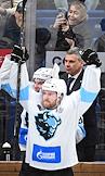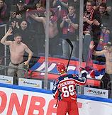Фонбет - Континентальная хоккейная лига (КХЛ). Чемпионат сезона 2024/25. Плей-офф. 1/8 финала. Матч между командами ЦСКА (Москва) - "Динамо Мн" (Минск) на стадионе "ЦСКА Арена". Игрок команды ЦСКА Олег Майстренко и болельщики во время матча.