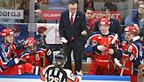Фонбет - Континентальная хоккейная лига (КХЛ). Чемпионат сезона 2024/25. Плей-офф. 1/8 финала. Матч между командами ЦСКА (Москва) - "Динамо Мн" (Минск) на стадионе "ЦСКА Арена". Главный тренер команды ЦСКА Илья Воробьев (в центре) во время матча.