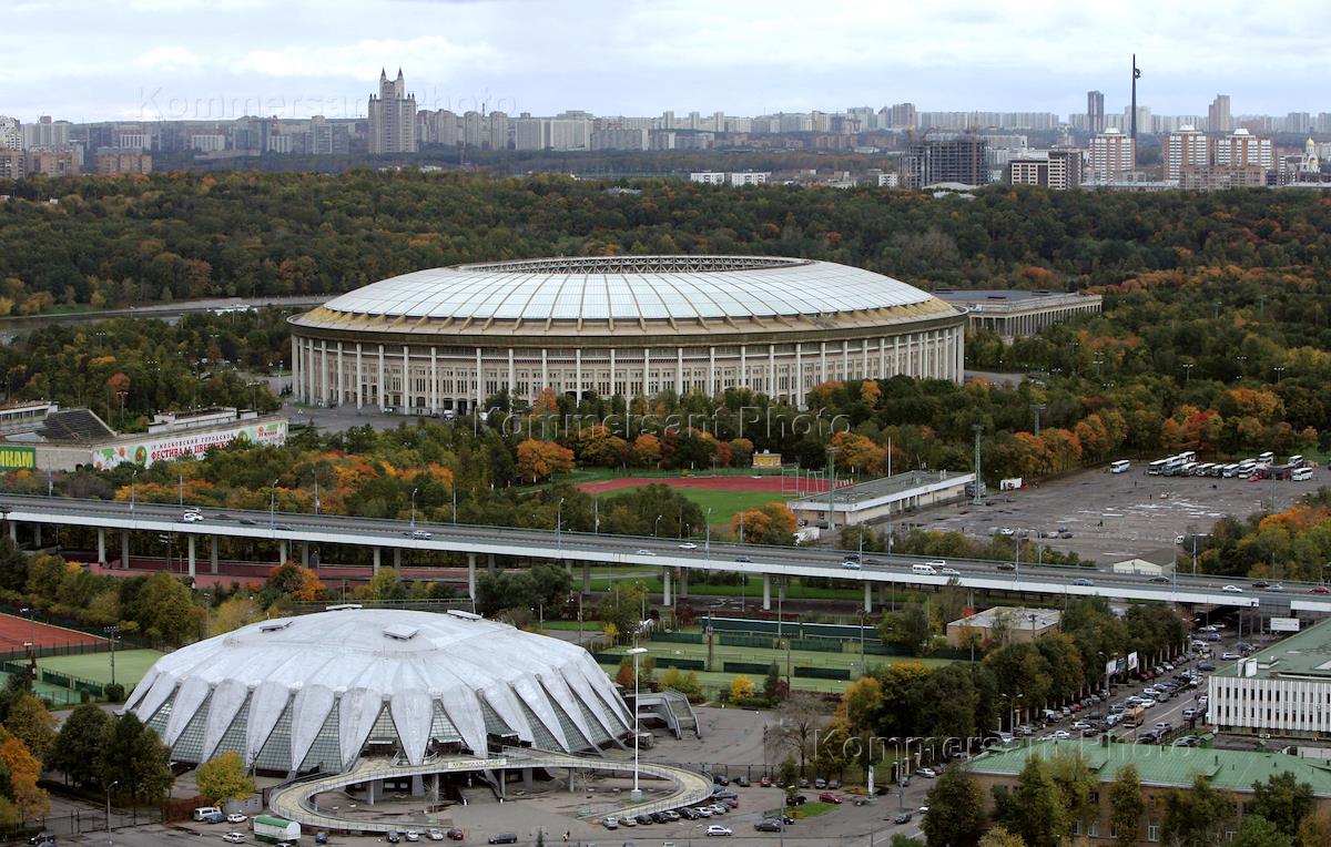 Виды на спортивный комплекс "Лужники" с крыши здания Российской академии наук (РАН).