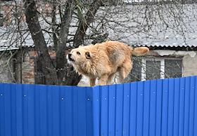Виды Рыльска. Жанровая фотография. Собака на заборе.