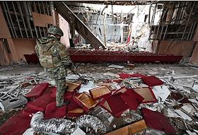 Ситуация в Курской области. Последствия ракетной атаки ВСУ на Рыльск. Разрушенное здание Дома культуры.