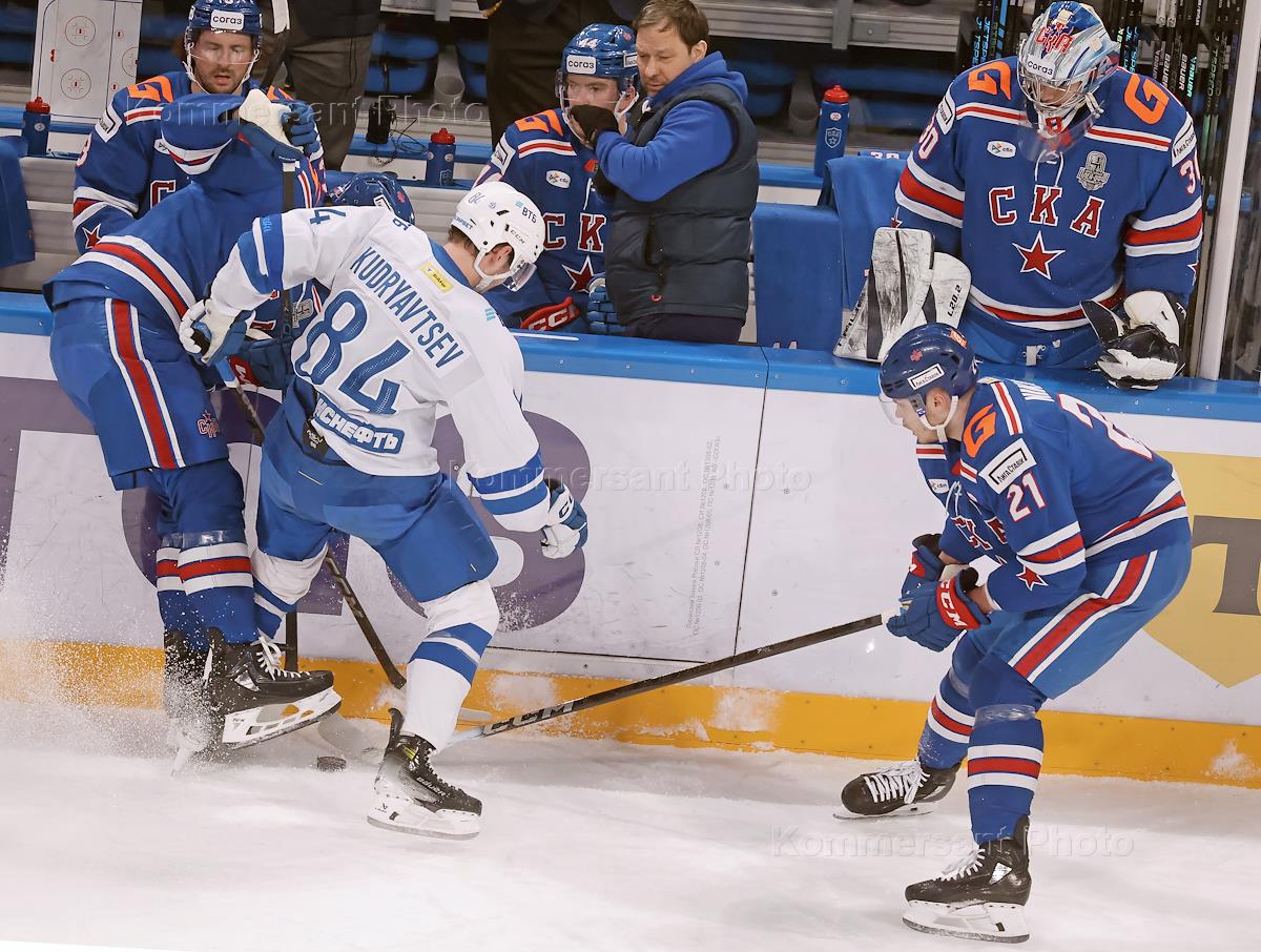 Фонбет - Континентальная хоккейная лига (КХЛ). Чемпионат сезона 2024/25. 1/8 финала. Матч между командами СКА (Санкт-Петербург) - "Динамо" (Москва) на стадионе "СКА Арена". Жанровая фотография.