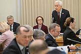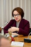 Заседание президиума фракции "Единая Россия" с участием председателя Центрального Банка России Эльвиры Набиуллиной в Государственной думе (ГД) России. Председатель Центрального Банка России Эльвира Набиуллина во время заседания.