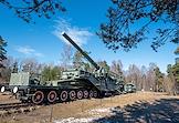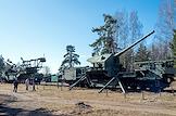 Виды форта "Красная горка" в Лебяженском городском поселении. 180-мм железнодорожная артиллерийская установка (ТМ-1-180) на площадке форта.