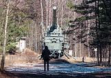 Виды форта "Красная горка" в Лебяженском городском поселении. Железнодорожный транспортер ТМ-3-12 с 305 мм орудием на смотровой площадке форта.